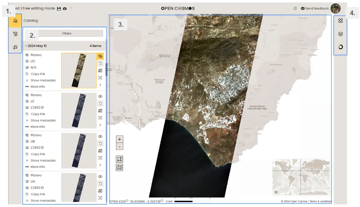 Through this platform, users can search and display all available products, while the interactive UI offers capabilities for performing various remote sensing applications.