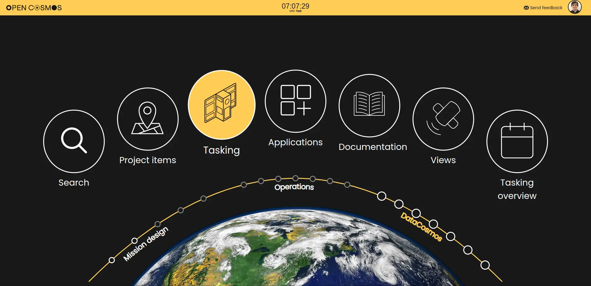 The tasking interface can be accessed from the OpenApp homepage, under DataCosmos: